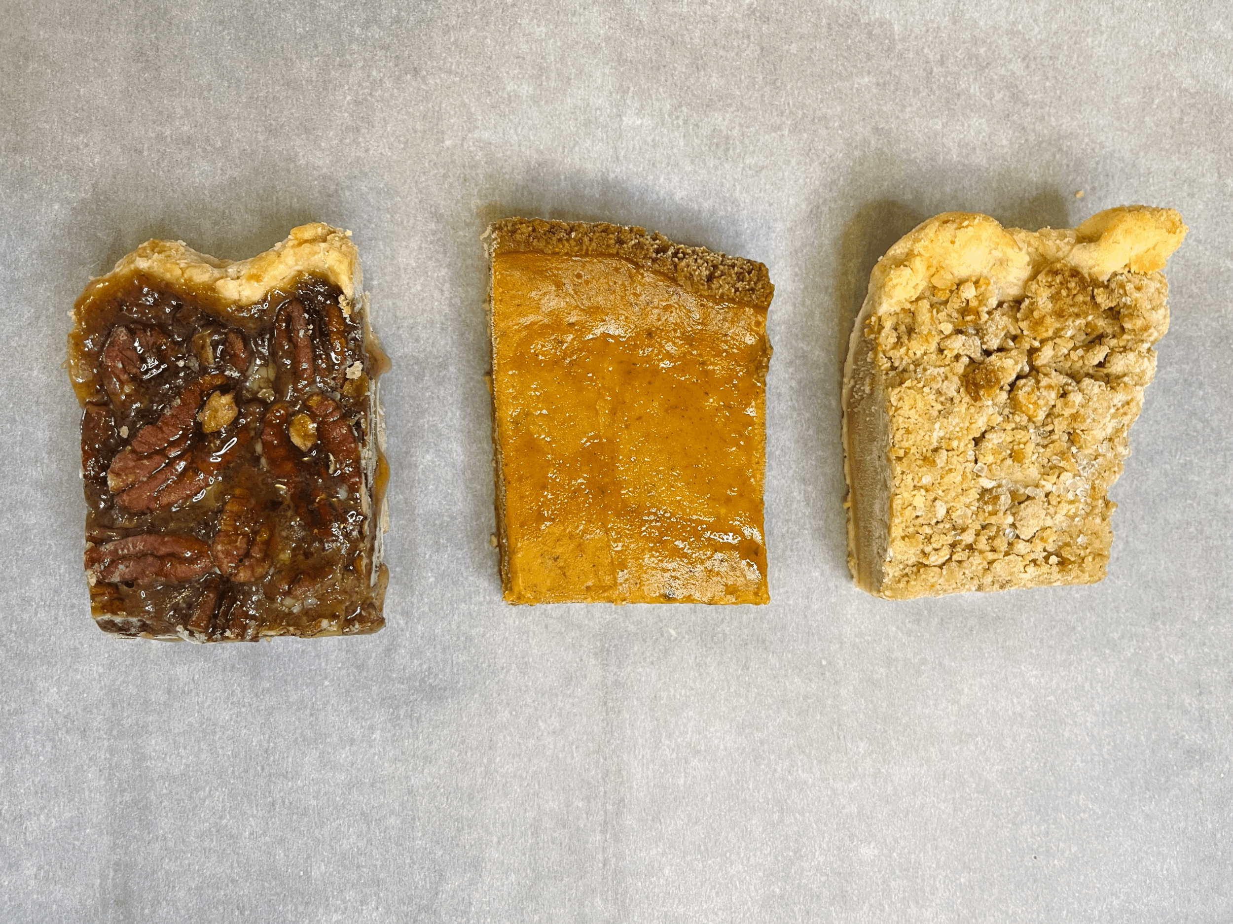 Save money and time with Pre order Pick up at Cunningham Park Sunday from 9am-2pm Pie Flight $16.00 Apple Toffee coffee cake $15.00 Pumpkin Coffee Cake (Full loaf) $15.00 Sweet Potato Bundt with a maple, caramel, pecan glaze $8.00 Pear Chai Scone Sale Price: $6.00 Original Price: $7.00 Sale Maple pecan oat scones Sale Price: $6.00 Original Price: $7.00 Sale Mixed berry scone Sale Price: $6.00 Original Price: $7.00 Sale